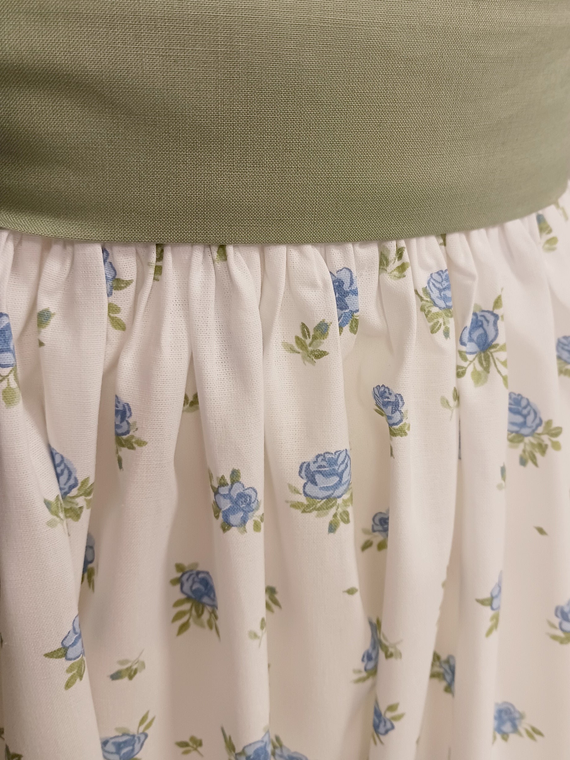 2-farbige Schürze aus Baumwoll-Popelin in floralem Design, Bund und Bänder einfarbig, perfekt abgestimmt.