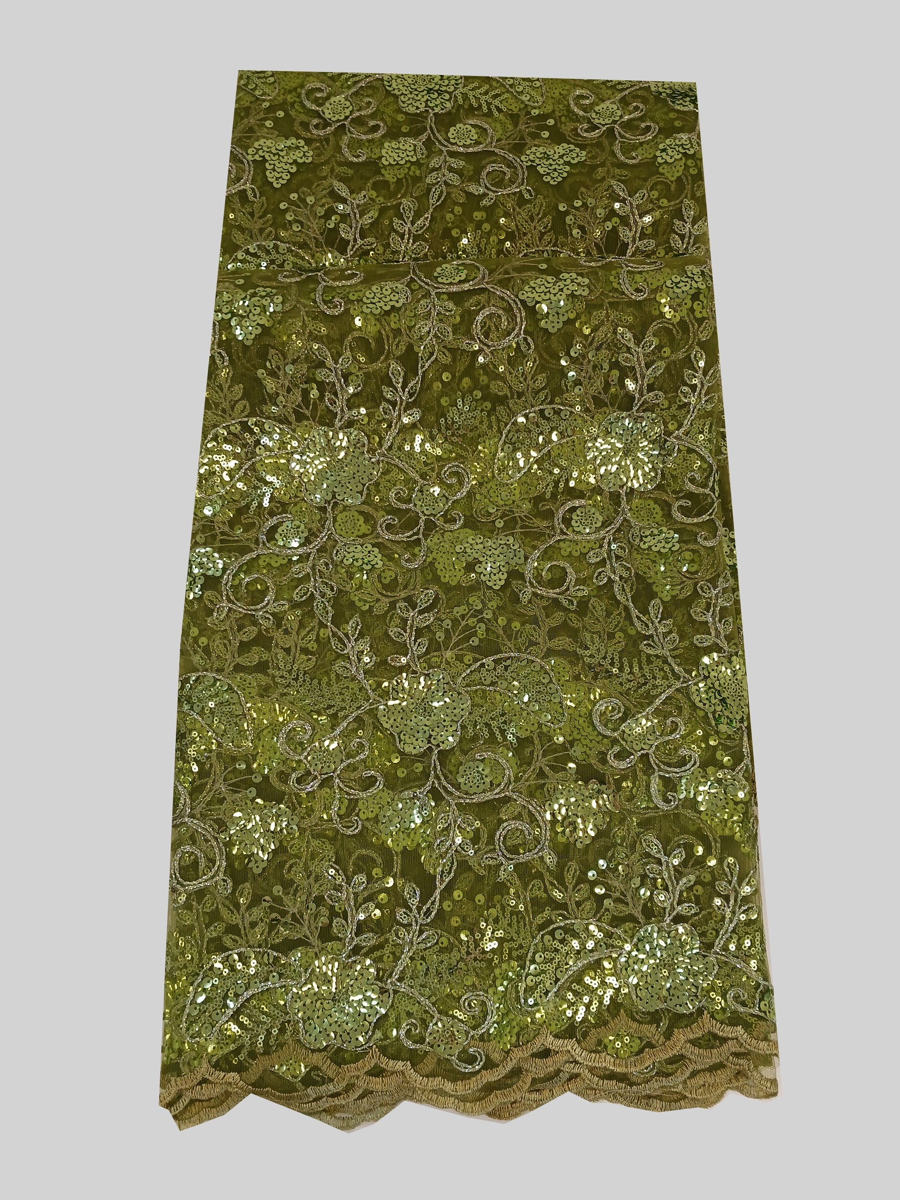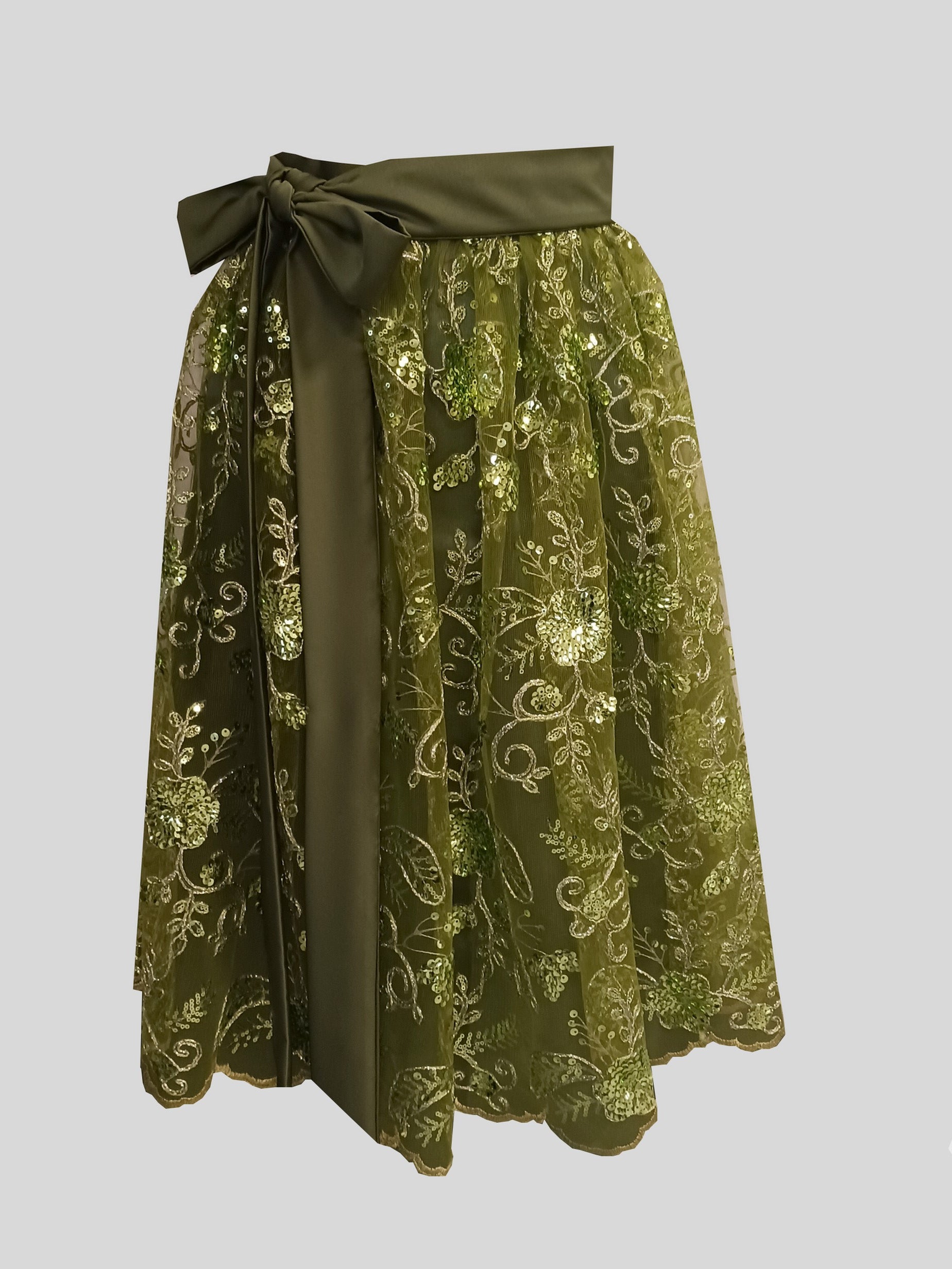 Damen Dirndlschürze franz. Spitze mit Blütenpailletten oliv