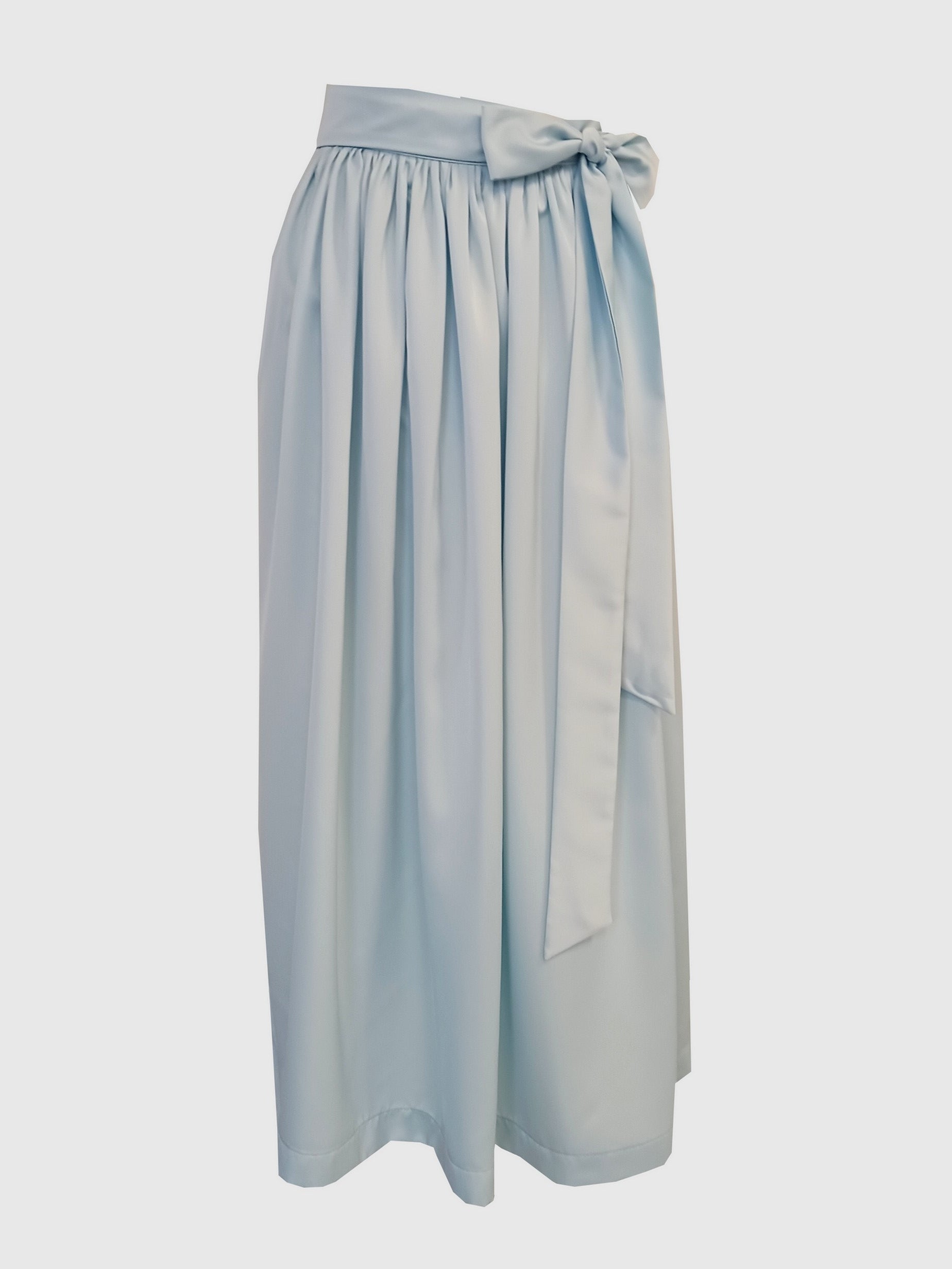 Schürze aus super weich fließendem, leicht schimmernden Royal Micro Satin in eisblau, unifarben. Seidenähnliche Optik, wunderschön fallend.