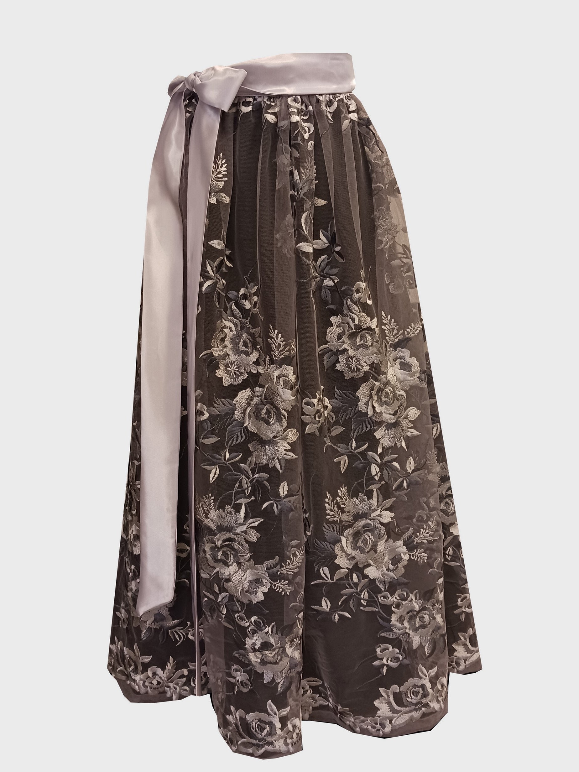 Damen Dirndlschürze Tüll-Spitze mit Stickerei grau silber