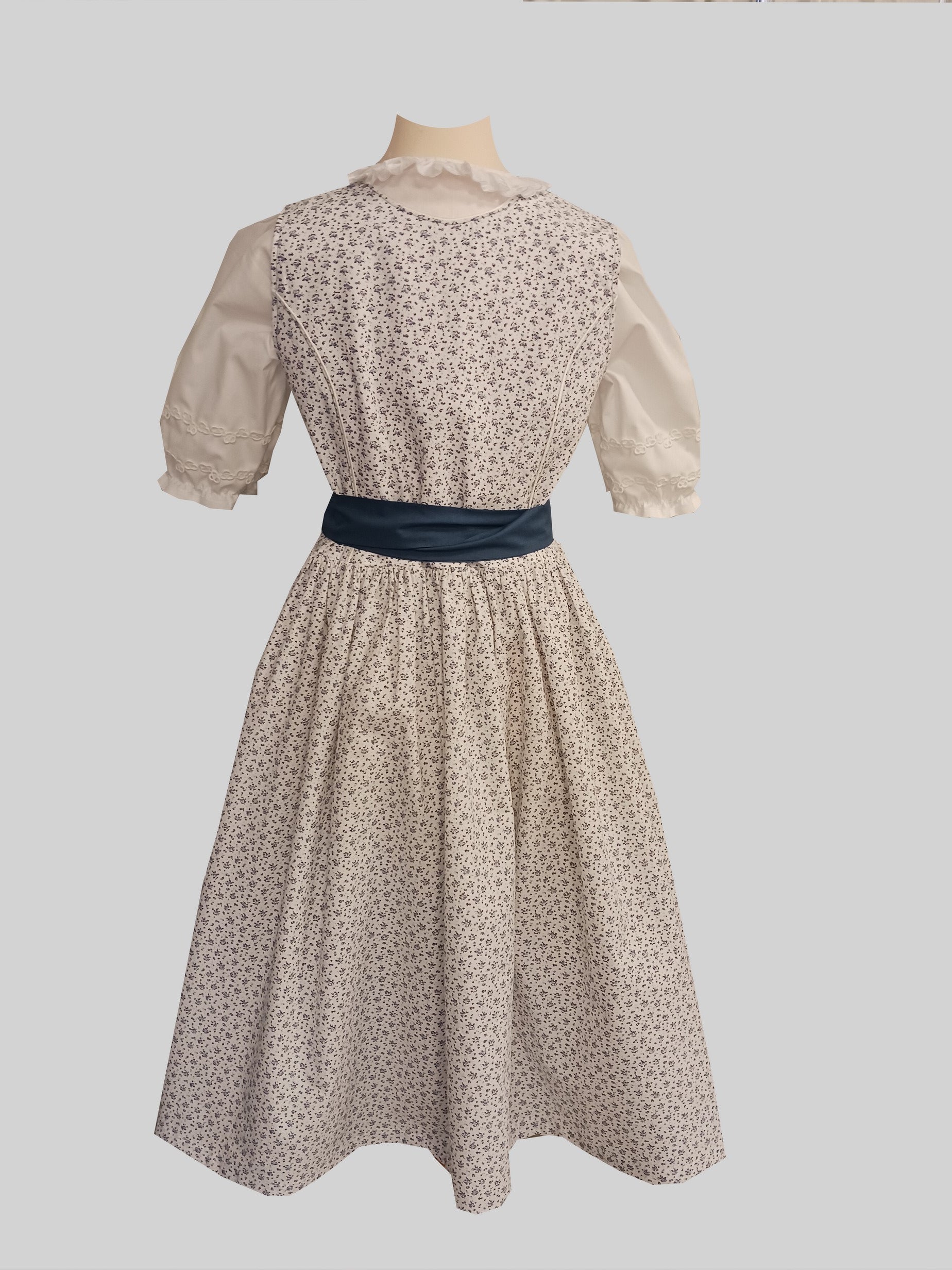 Klasse Kinderdirndl in weiß-blau. Das Oberteil ist abgefüttert. Vorne Knopfleiste zum Knöpfen. Die abgestimmte Schürze zum Binden rundet das traditionelle Highlight für dieses modische Stück ab.