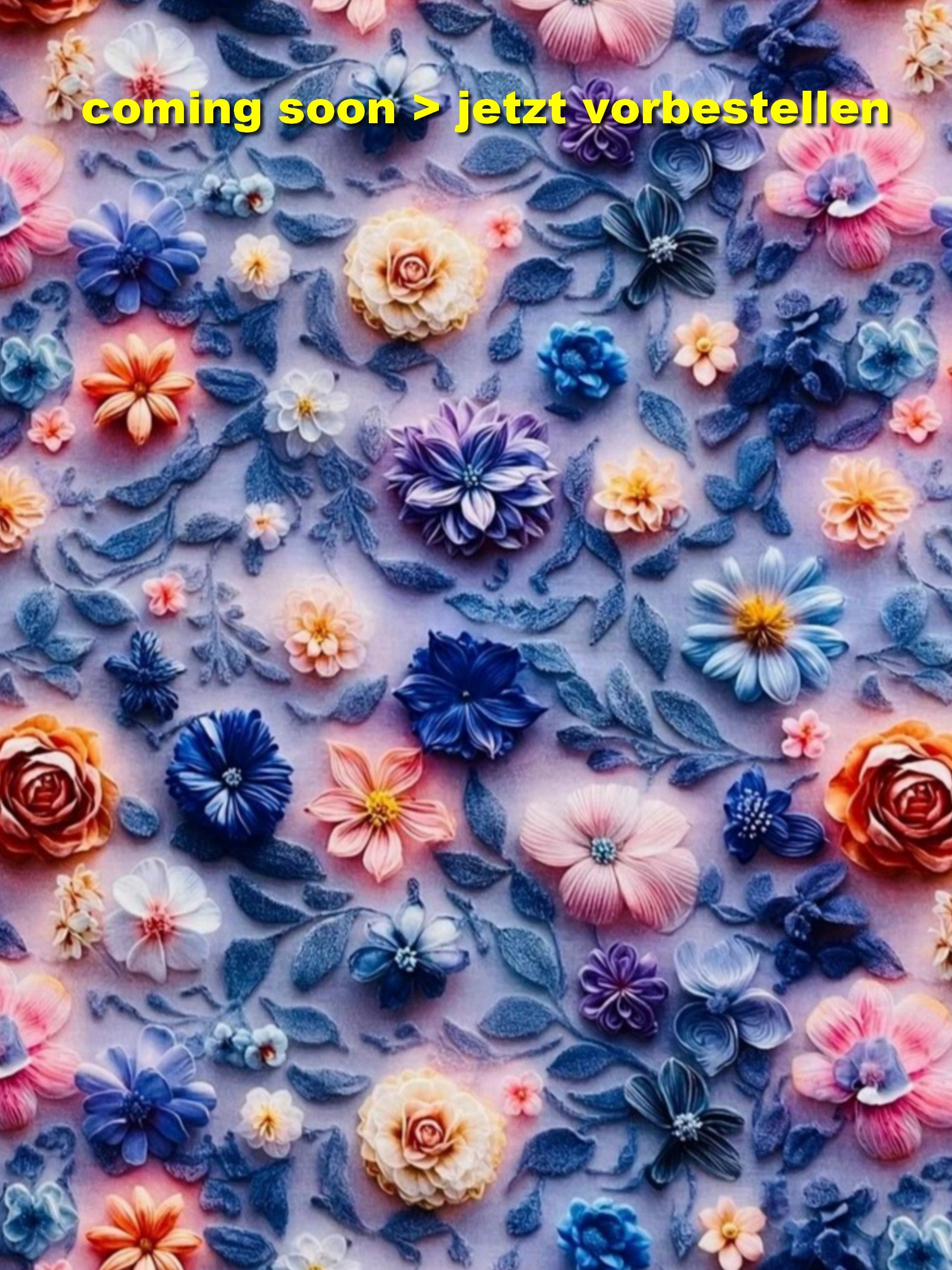 Damen Dirndlschürze Baumwolle Premium-Line Blumendruck 3D-Effekt blau-rosa mehrfarbig