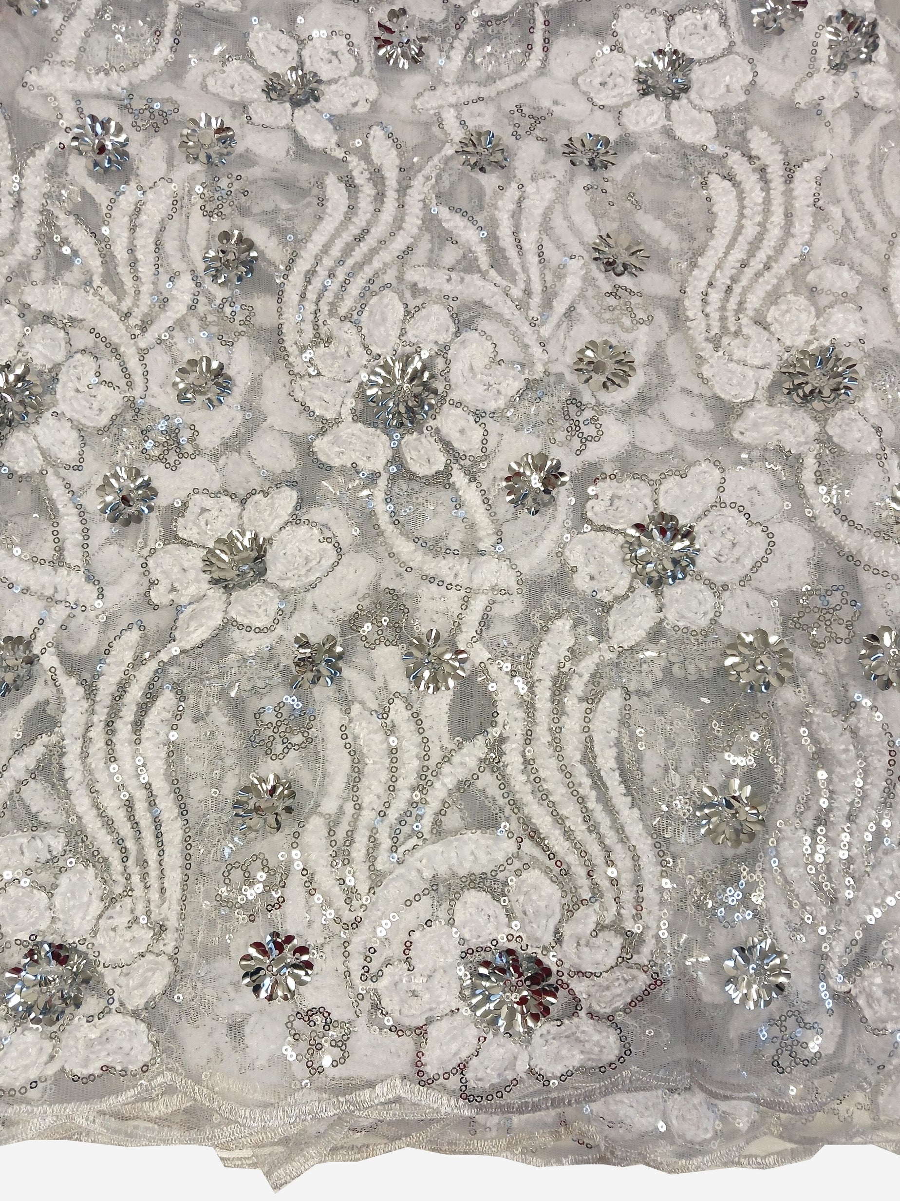 Damen Dirndlschürze franz.-afrik. Spitze mit Pailletten weiß 3D Blüten