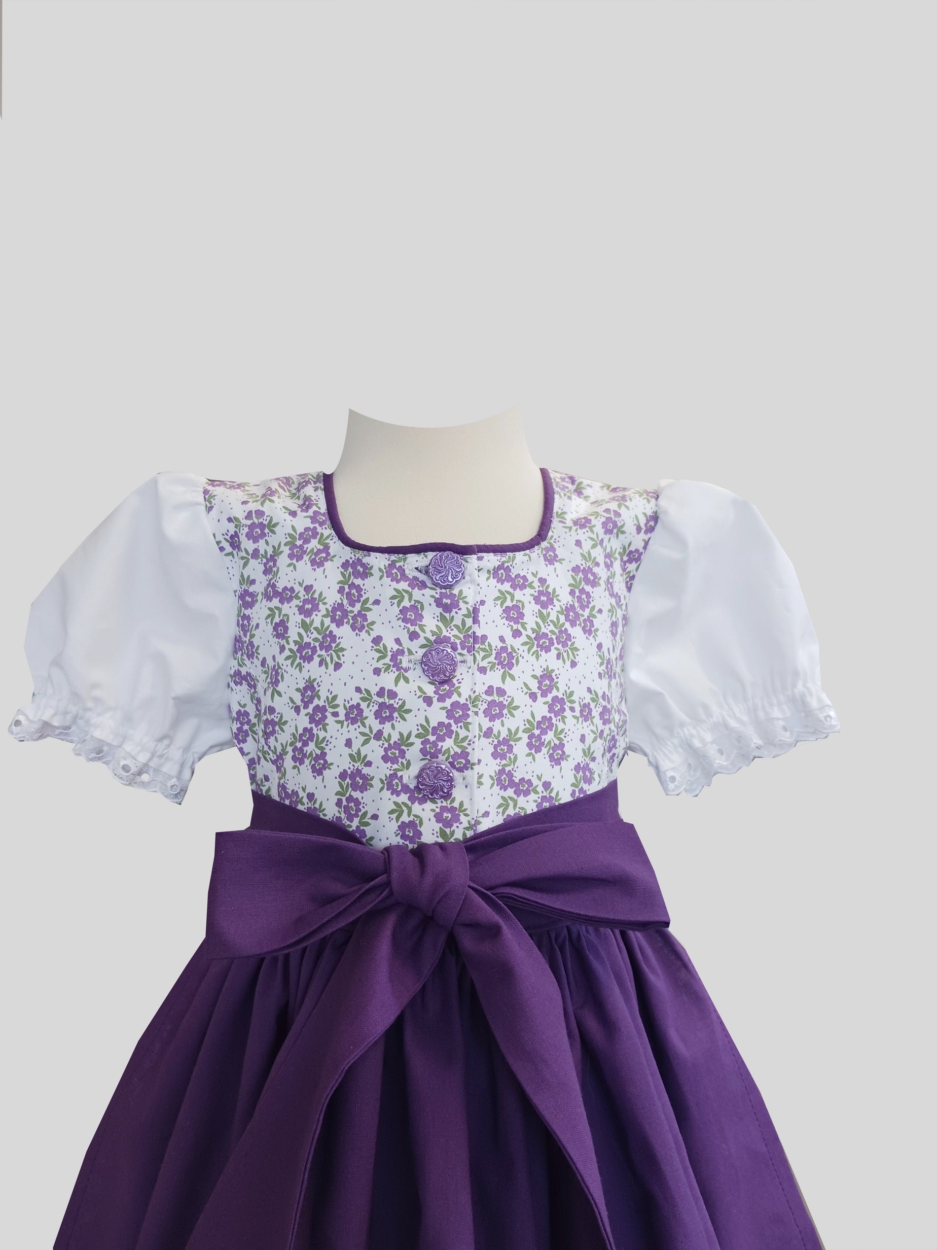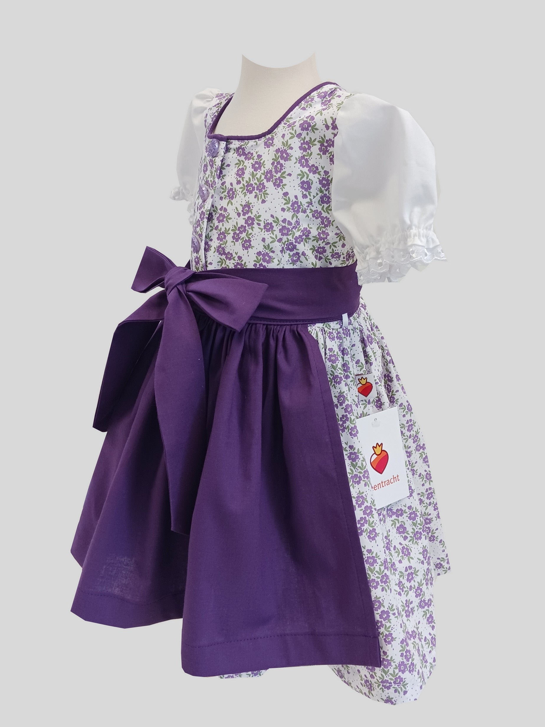 Bezauberndes Kinderdirndl im wunderschönen Blümchendesign. Das Oberteil ist abgefüttert und verziert, Vorne Knopfleiste zum Knöpfen. Angenähte Puffärmel. Die abgestimmte Schürze zum Binden rundet das traditionelle Highlight für dieses modische Stück ab.